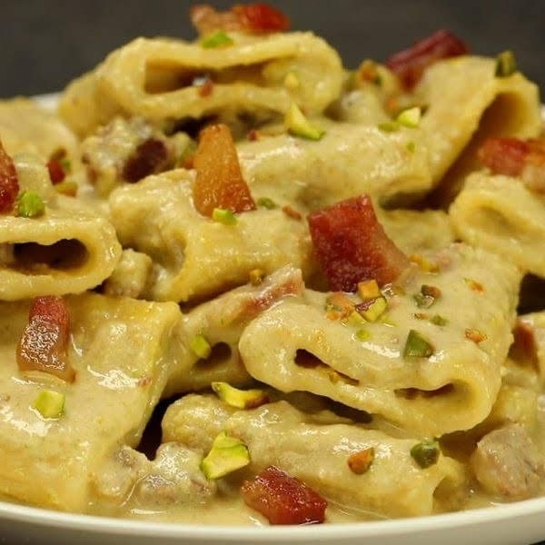 -200g di guanciale o pancetta -170g di burrata -80g di pistacchi -300g di paccheri